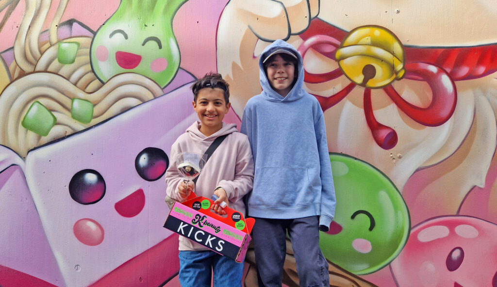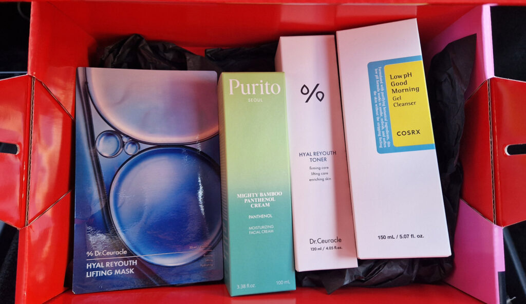 K-street har också ett skönhetshjul i samarbete med Kicks där man kan vinna K-beauty-produkter och hudvård. Theos kompis vann (till sin mammas och systers glädje) så vi kan till och med visa vad som är i lådan man vinner.