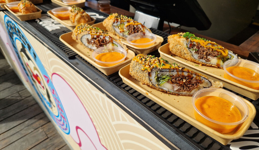 Överlag kändes hela stämningen väldigt positiv med alla K-pop inslag, roliga graffitiväggar, färger och inte minst inslag av spännande mat som kryddade popcorn (med till exempel kimchi!), sushi burrito, noodle cups och korean bites där man kan välja fläsksida eller tofu med peppar glaze, ris, syrlig kålsallad och gochujangmajonnäs. För den som vill ha något mer traditionellt finns även Slices & Fries (pizzaslices med dirty fries).