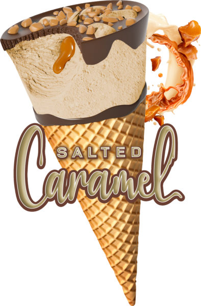 Salted Caramel är en glasstrut gjord på gräddglass, smaksatt med dulce de leche och salt kolasås i våffla. Överst är struten toppad med choklad och krispiga smörkolabitar.