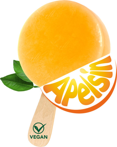 Apelsin är en vegansk sorbet på pinne med fruktig smak av apelsin och mandarin. En riktigt härligt gul färgklick som lyser i kapp med solen i sommar.