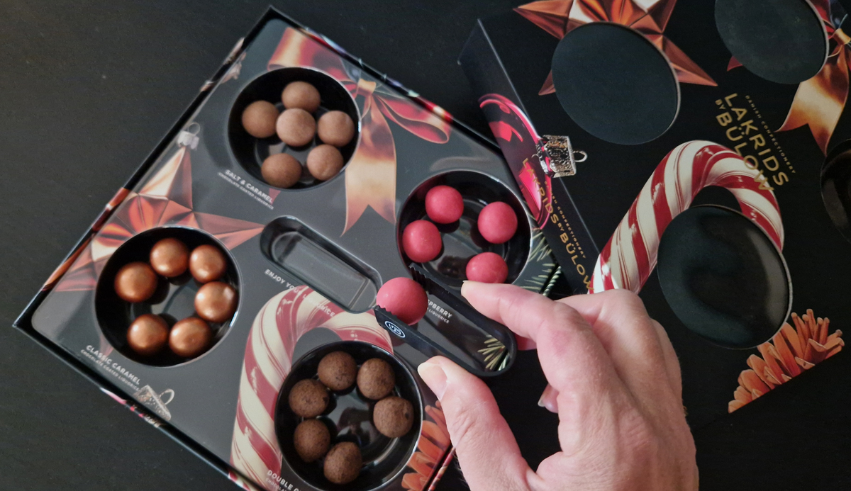 Med förbehållet att vi kommer skriva en ärlig recension, har vi tagit oss an uppgiften att provsmaka och tycka till om säsongens produkter som inkluderade en julask med fyra sorters lakrits, sju kulor av varje, samt en burk av de kopparglänsande kulorna som heter ”classic”.